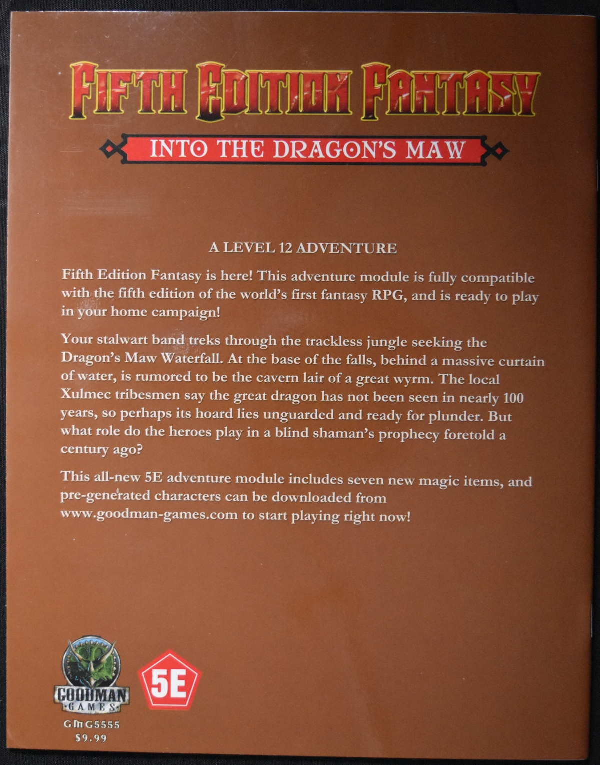 This all-new 5E adventure module includes seven new magic items, and pre-generated characters can be downloaded from www.goodman-games.com to start playing right now!
