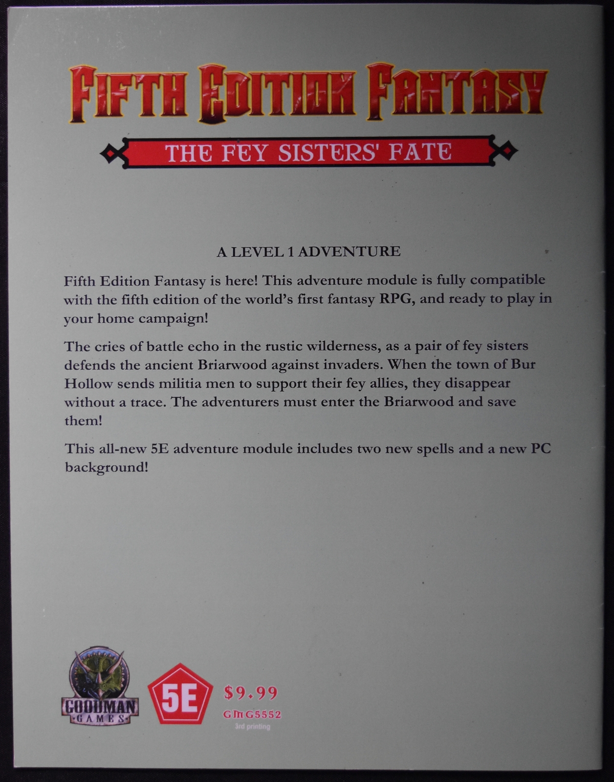 Fifth Edition Fantasy is here! This level 1 adventure module is fully compatible with the fifth edition of the world’s first fantasy RPG, and ready to play in your home campaign!